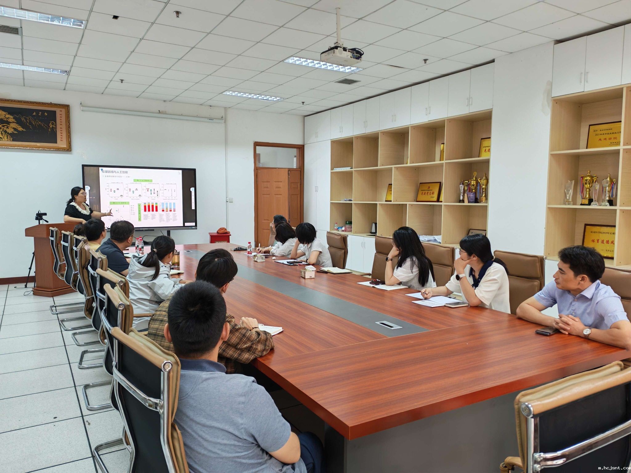 报告互动环节,安笑迟博士与参会人员针对人工智能应用于宏基因组与疾病研究之间交叉研究进行热烈讨论。此次报告既有系统性阐述,又有细节性拓展,内容丰富、深入浅出,现场互动交流热烈。(丁沛乔/文、摄)